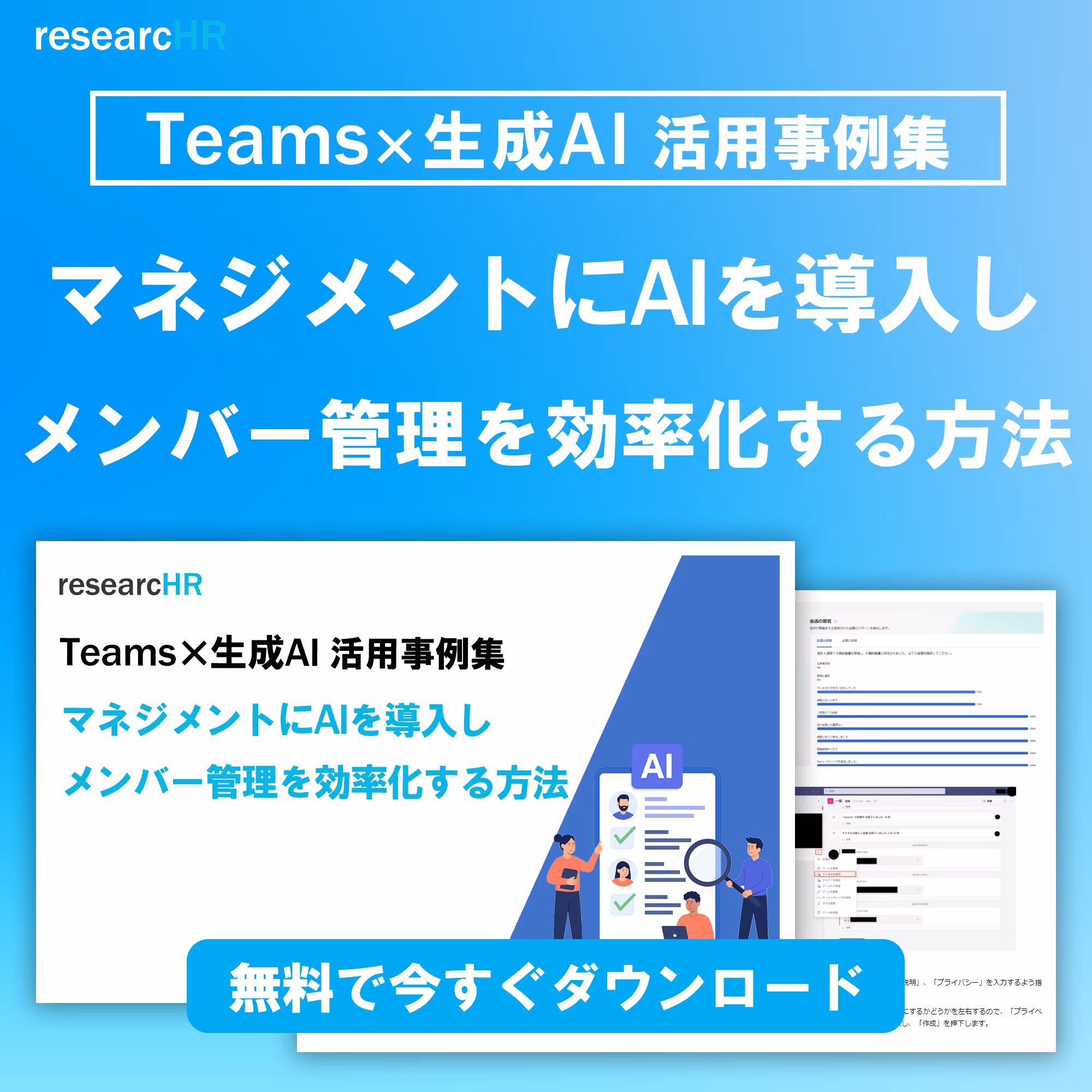 ご希望の方に、無料で【Teams×生成AI活用事例集】マネジメントにAIを導入し、メンバー管理を効率化する方法をお渡しいたします。