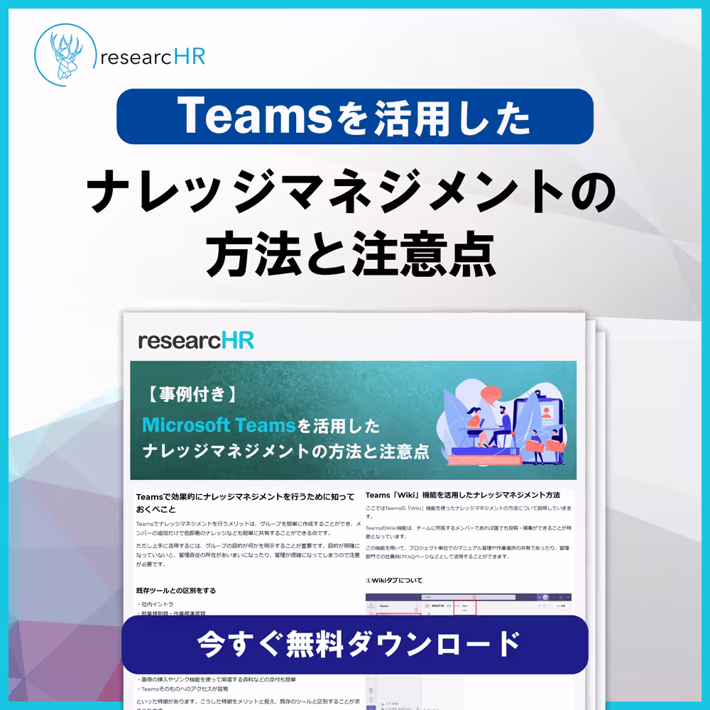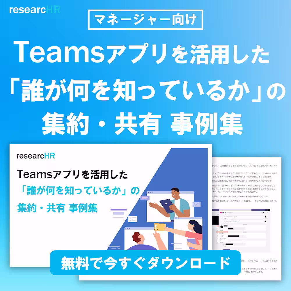 KBE株式会社が、ナレッジ共有TeamsアプリresearcHRを提供する過程で蓄積された、様々な企業の「Teamsを活用したマネジメント事例」をお伝えします。