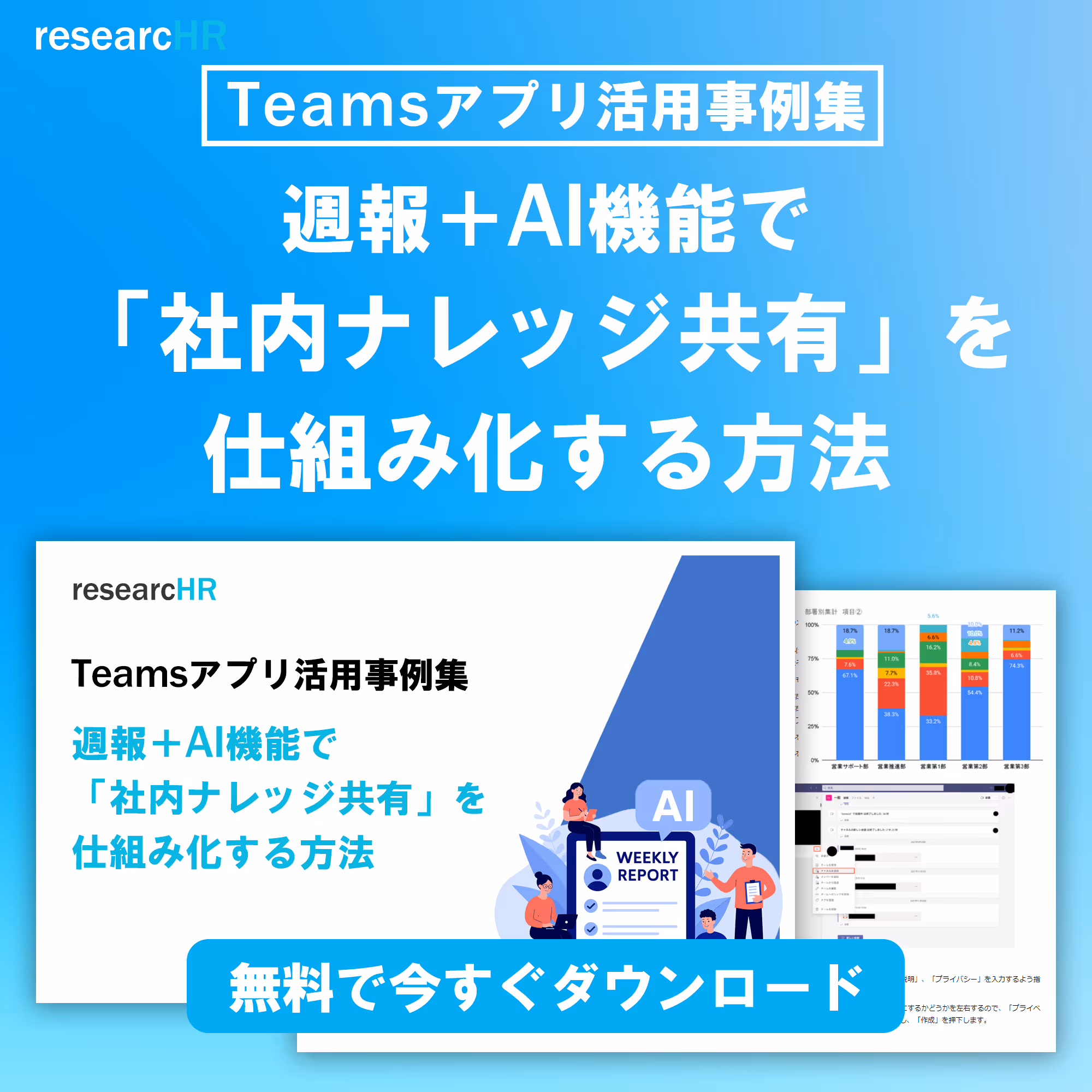 KBE株式会社が、ナレッジ共有TeamsアプリresearcHRを提供する過程で蓄積された、様々な企業の「Teamsアプリを活用したナレッジ共有文化の定着化事例やTIPS」をお伝えします。